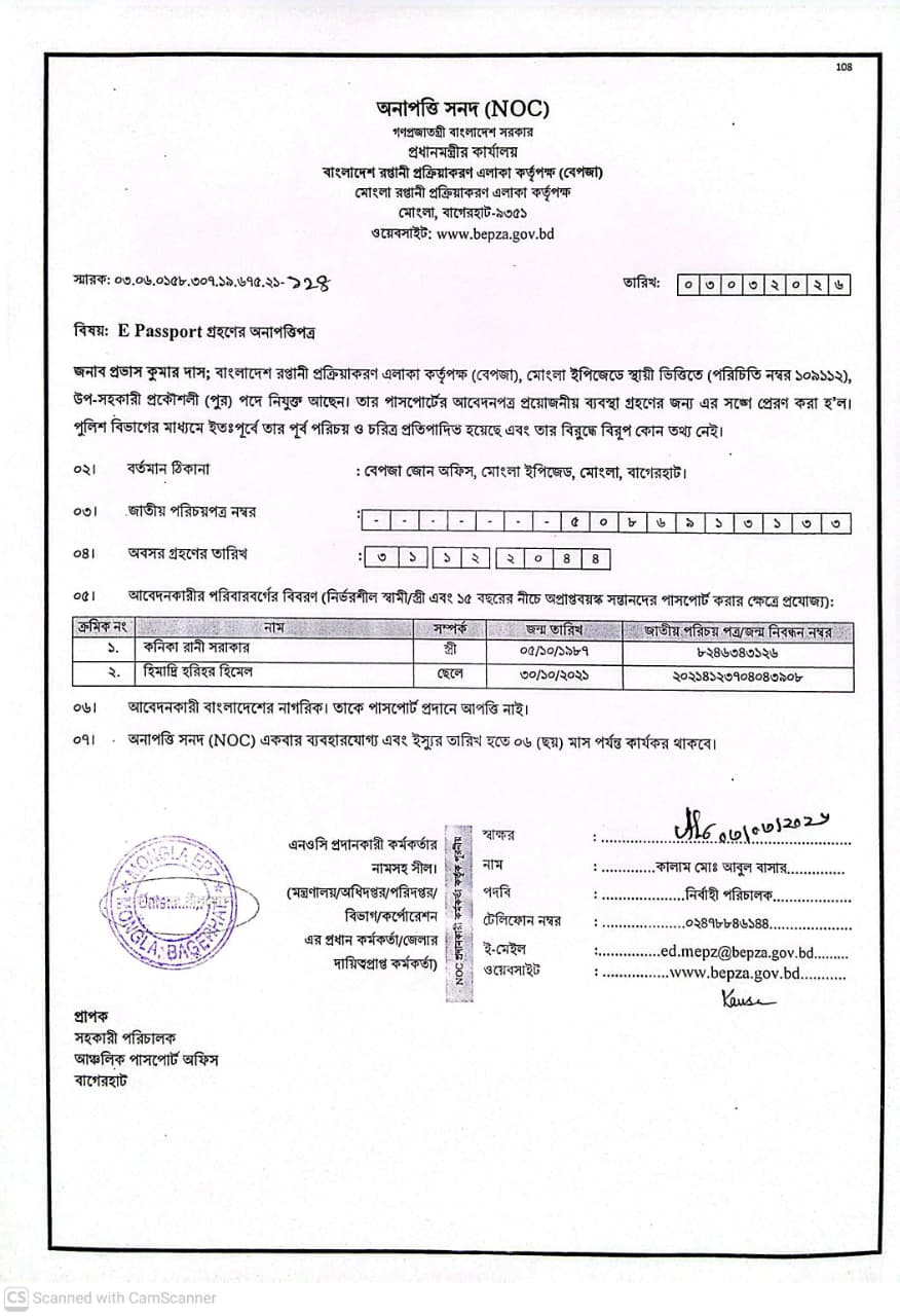 | 03.06.2616.307.18.014.19-94 | NOC for Receving e-Passport of Mr. Md. Kabir Hossain Contact Number(109031) Executive Engineer (Civil) BEPZA | Feb 05, 2026 | View |